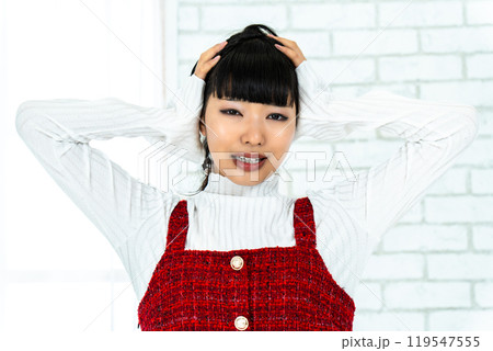 がっかり 表情 感情 女の子 ピンクの服 ボブカット 茶色の髪の毛