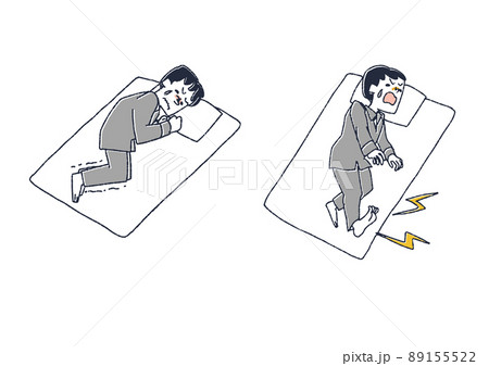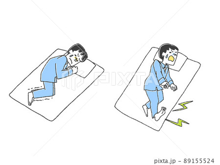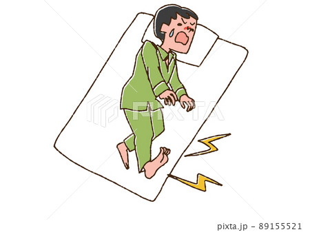 寝ている時に足が攣った男性 コミカルな手書きの人物 ベクター、温かみのある線画