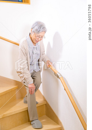 階段を下るシニア女性 高齢者 老人