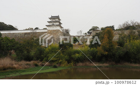 兵庫 明石 明石城のひぐらし池と巽櫓・坤櫓(南東方向から、晩春)