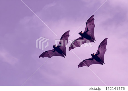 Bats Flying in a Purple Sky at Dusk With Scattered Clouds