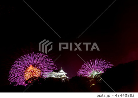 滋賀県 彦根・北びわ湖大花火大会 彦根城の天守閣 比較明合成
