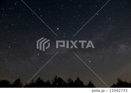 夏の夜空に輝く夏の大三角形と天の川 満天の星空風景