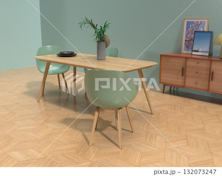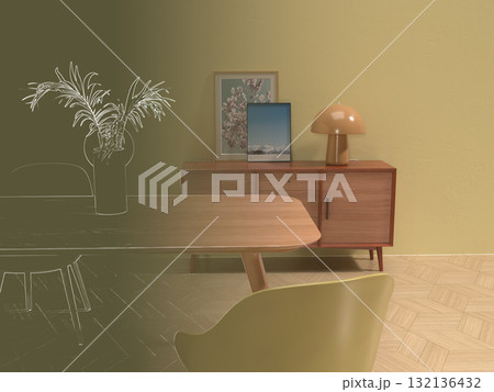 シンプルなリビングルーム、ダイニングルームのフォトリアル3Dイラスト,インテリア設計