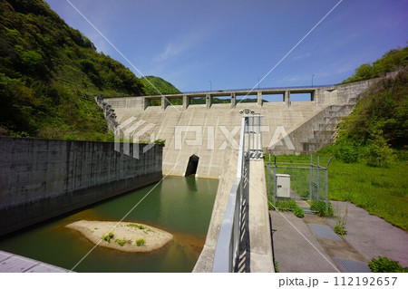 益田川ダムの堤体と常用洪水吐