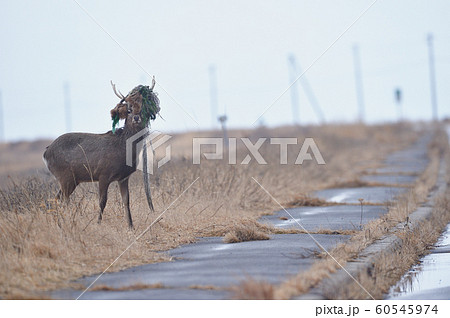 漁網が絡まったエゾシカ(北海道)