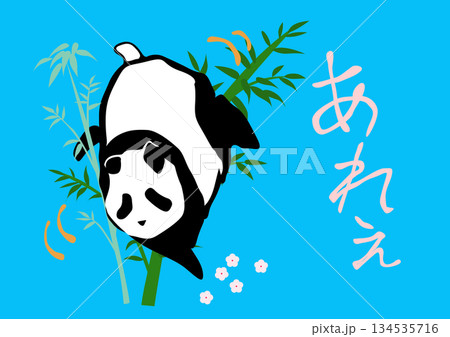 パンダ イラスト ~7~ 笹にてこずっているパンダ