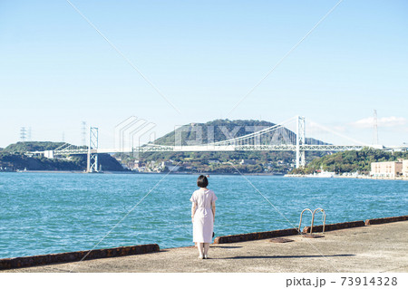 門司港とそれを海を臨む女性