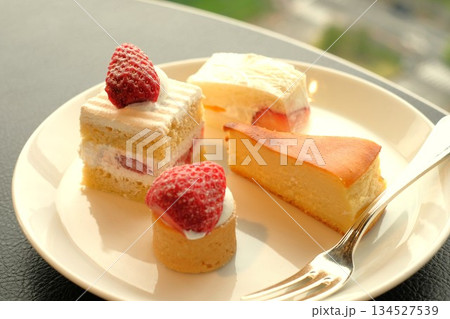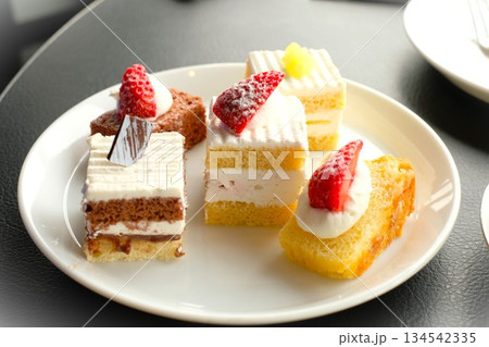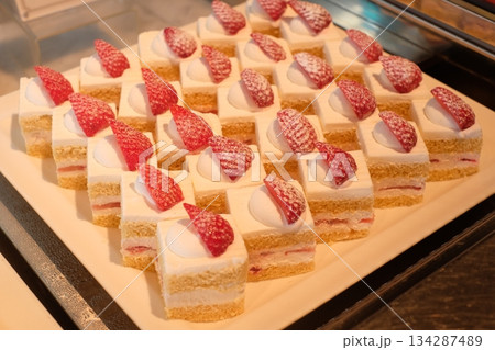 ビュッフェ会場に並んだショートケーキ
