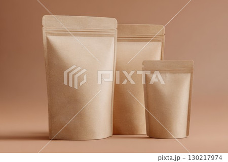 Kraft bag mockup with minimalist style. Great for eco-friendly packaging or brand presentation, this paper pouch fits various design needs. Ideal for showcasing products in a clean environment.