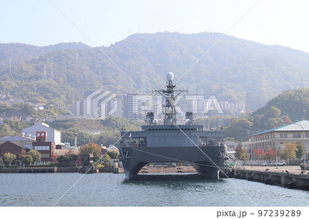 呉港の海上から見た音響測定艦はりま 2022.11.12撮影