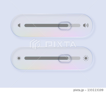 Liquid glass of ui elements showing volume and brightness settings. Concept for application interface. Vector