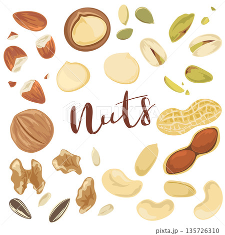 Assorted Nuts and Seeds Vector Illustration on White