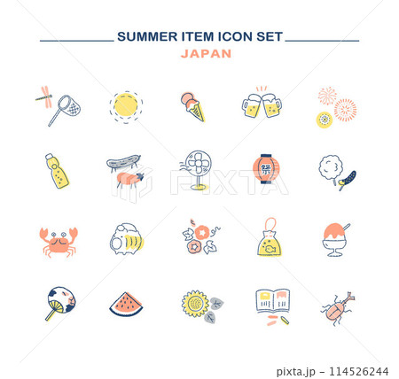 日本の夏のイメージ アイコンセット