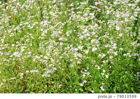 夏の野の花ヒメジョオン(類似するハルジオンから少しずれて咲き始める)横位置