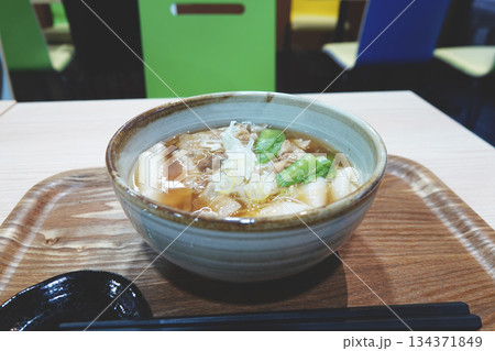 暖かいお汁のひもかわうどん