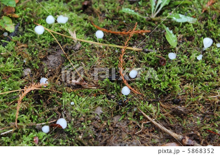 あられ(霰)かひょう(雹)のような小さな氷の粒が地面に広がって落ちている/The hail