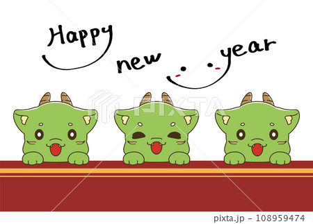 笑顔の龍のキャラクターとHappyNewYearの年賀状