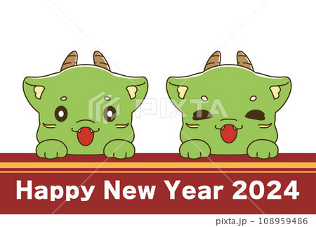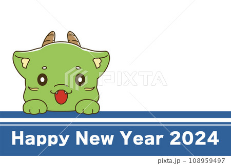 笑顔の龍のキャラクターとHappyNewYearの2024年の年賀状