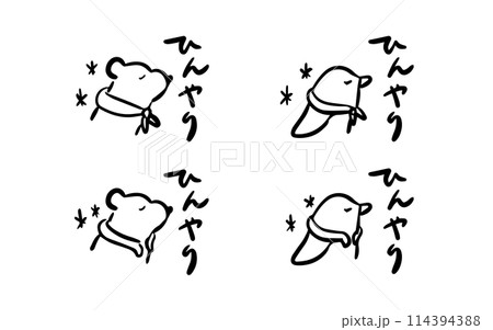 首を冷やす冷感グッズを付けるペンギンとシロクマのイラストセット