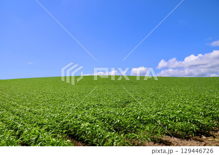 大豆畑と大空(北海道・美瑛町・びえいちょう)