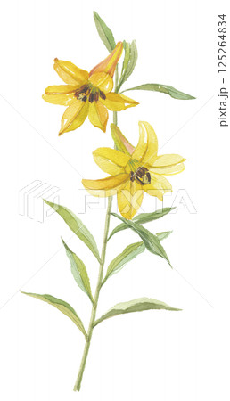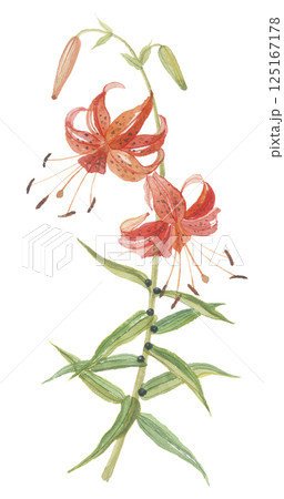 水彩で描いたオニユリ(鬼百合)とビャクゴウ(百合)