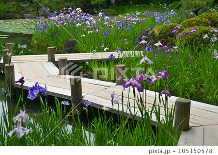 6月の京都平安神宮 神苑の花菖蒲と八ツ橋