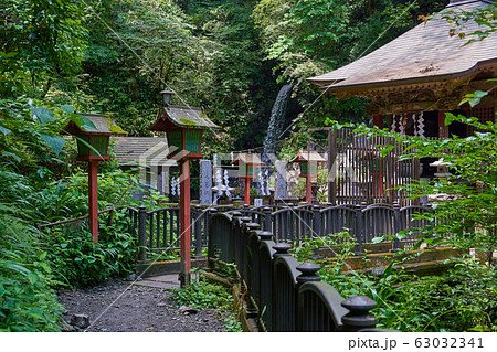 東京八王子市 初夏の高尾山6号路付近にある琵琶滝と水行道場