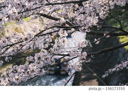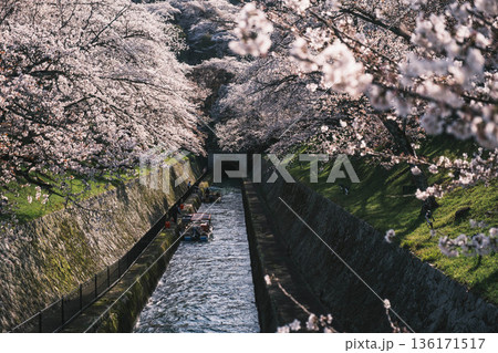 満開の桜の下の「びわ湖疏水船」~山科付近にて