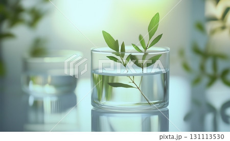 Natural tea tree oil water serum extract on bottle serum and glassware preparation for skincare ingredient