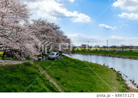 桜と菜の花と青空に彩られた埼玉県びん沼川の春