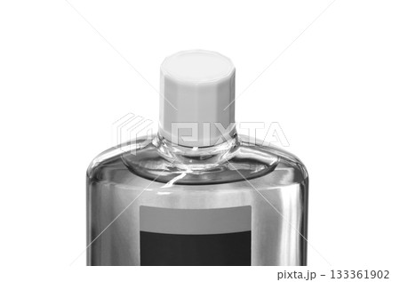 【切り抜き透過背景素材】スクリューキャップを閉めた育毛剤の透明のボトル