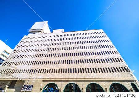 日本の横浜都市景観 桜木町駅前の複合施設「桜木町ぴおシティ」などを望む