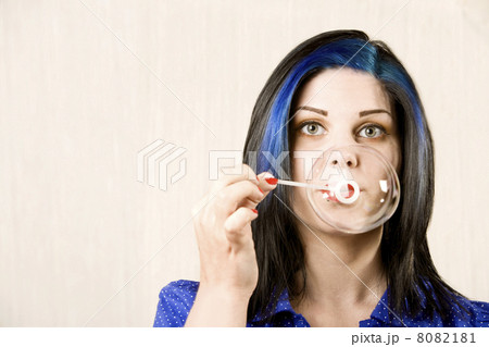 Pretty Woman Blowing a Bubble