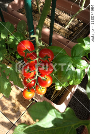 ミニトマト、プチトマト、トマト、とまと、房成、ふさなり、鈴なり、鈴生り、すずなり、スズナリ、バジル、