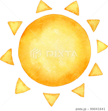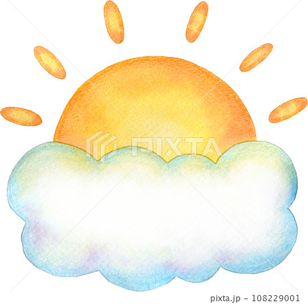 雲から半分のぞく太陽のキャラクターの水彩イラスト