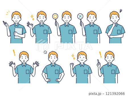 ポロシャツを着た男性の表情バリエーションセット_イラスト