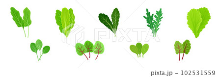 Leaf Vegetables or Vegetable Greens as Salad Ingredient Vector Set