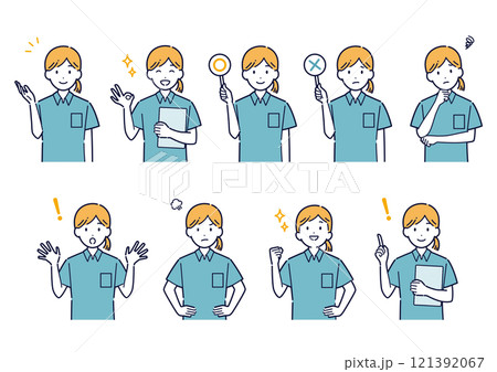 ポロシャツを着た女性の表情バリエーションセット_イラスト