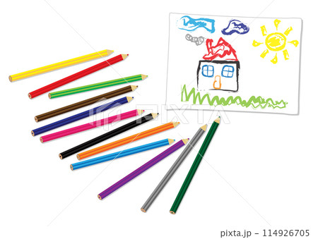 Realistic school supply. Office stationery. Color highlighters. Sharpened pencils. Children painter education. Graphite pens and pigment markers for writing. Vector drawing tools set