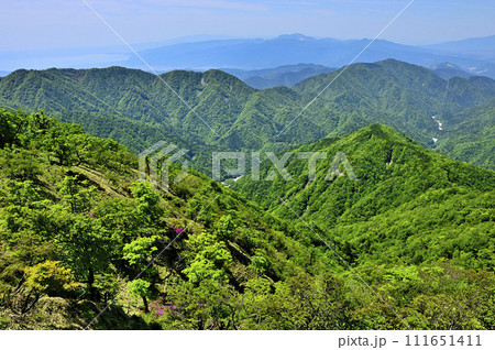 丹沢山地の不動ノ峰より 新緑の山地に丹沢山