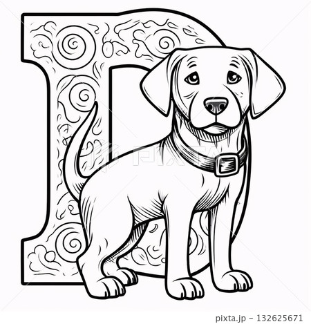 Cute cartoon dog breed Labrador Retriever. Vector illustration. letter D