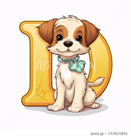 Cute puppy with letter d. Vector illustration of a cartoon dog.