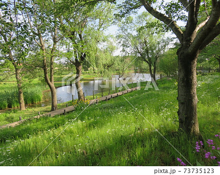北柏ふるさと公園 初夏の花咲く水辺の風景