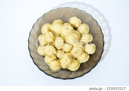 Glass Bowl with Boiled Dumplings on Light