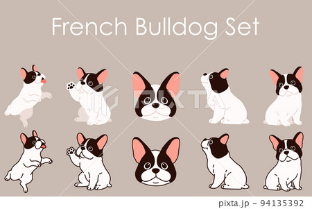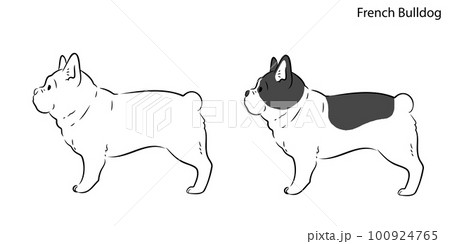 シンプルで可愛いフレンチブルドッグのイラストセット 主線あり・なし