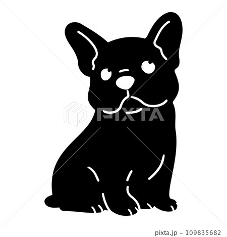 前を向いてお座りするフレンチブルドッグのシルエット 顔付き