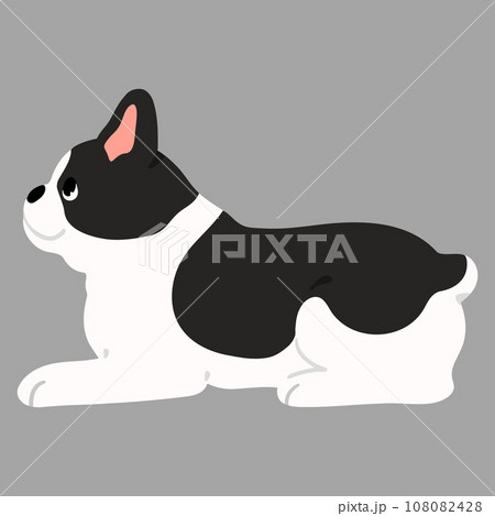 伏せをするシンプルで可愛いフレンチブルドッグのイラスト 主線あり