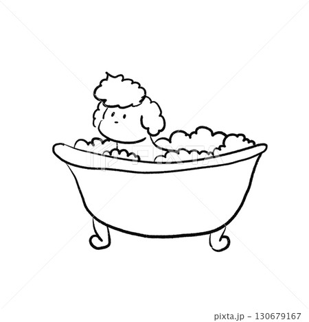 お風呂に入っている線画の犬