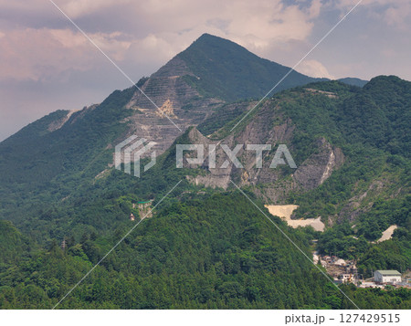 武甲山の雄大な眺め 埼玉県秩父市(ドローンによる空撮)
